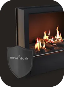 Neverdark non richiede una canna fumaria né un sistema di ventilazione. Può essere installato anche in appartamenti e ambienti dove un camino classico è impossibile.