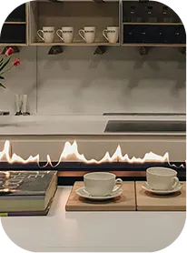 Il fuoco è più del calore. È un’energia primordiale che plasma l’atmosfera, valorizza l’architettura e crea una sensazione di comfort assoluto. Neverdark ti offre la possibilità di avere una vera fiamma — senza fumo e senza compromessi. È un nuovo livello di lusso d’interni.